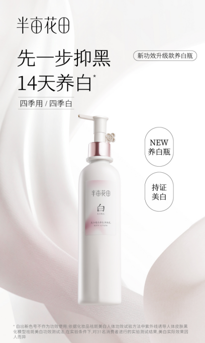 与全新代言人一同亮相的,还有半亩花田春日焕新上线的身体系列新品——美白透亮香氛身体乳。被粉丝们昵称为养白瓶的它,是半亩花田推出的又一款美白力作,采用表层净黑、源头阻黑、持久抑黑的3重养白链路,多通路协同祛除肌肤表面的黑色素沉淀,持久抑制黑色素的生成与搬运,于源头先一步抑黑,14天快速养白肌肤,重新点亮肌肤光采。