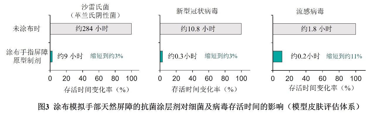 ●模拟手部天然屏障的抗菌涂层剂使皮肤上的细菌和病毒的存活时间大幅缩短