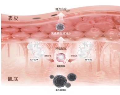 这意味着 KT-939 能够更迅速、更彻底地阻断黑色素的生成,从源头上遏制色斑的形成,为消费者带来更显著的美白效果。