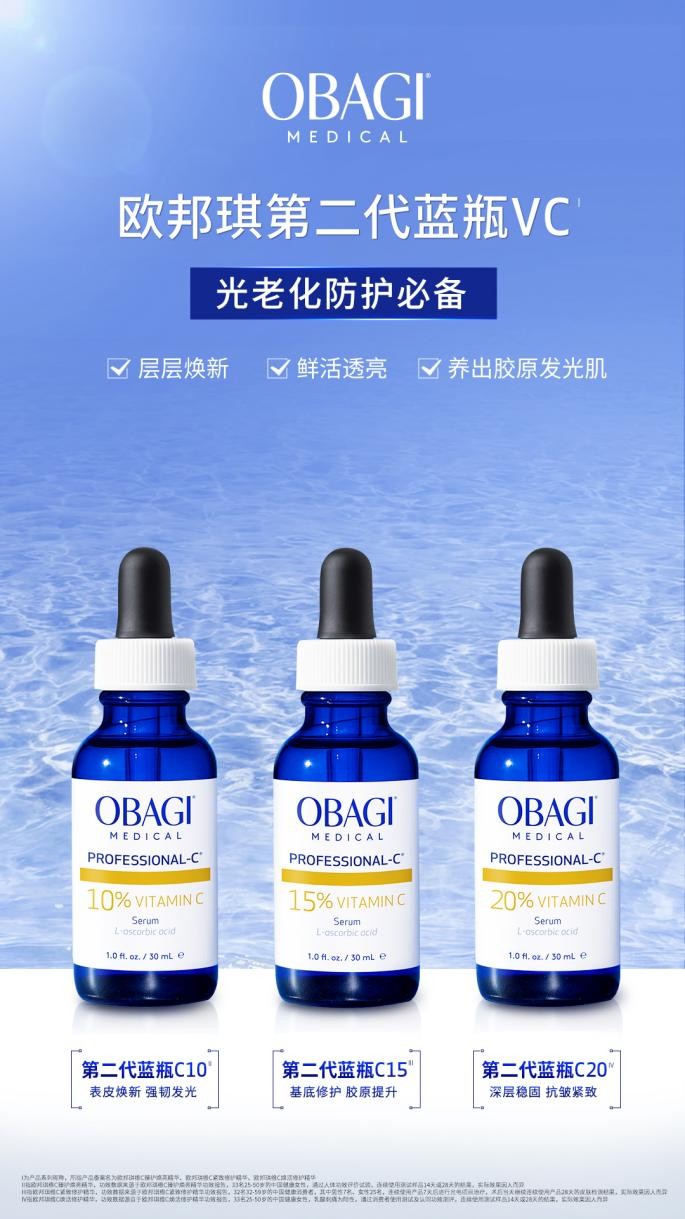 在发布会中,欧邦琪专家提出应以“Protection”防护型护肤品,展开全日的护肤起点,在白昼间抵御氧化焕肤修复。在白天,皮肤面临紫外线、空气污染、蓝光等多重外界损伤,赵小忠院长以临床案例,为在场嘉宾分享第二代蓝瓶VC精华,解析“早P”能够形成保护屏障,减少自由基损伤的重要性和必要性。作为欧邦琪王牌星品,第二代蓝瓶 VC精华以其独特的配方优势及卓越功效,在全球功效护肤市场皆享有盛誉。现今「第二代蓝瓶 VC」精华在配方与功效全面提升,拥有7项专利技术。在抗氧提亮的同时,攻克沉着色素,淡化皱纹,使皮肤更匀净透亮,锻造理想好状态。同时,第二代蓝瓶 VC 精华以三重浓度左式VC为各种肤况量肤定制保驾护航,「第二代蓝瓶C10」细腻光泽,缔造胶原透亮肌。「第二代蓝瓶C15」紧致修护,绽启细腻光泽肌。「第二代蓝瓶C20」淡纹防护,强韧年轻肌。第二代蓝瓶 VC 精华以强韧防护力,抵御氧化泛黄,重塑焕肤新标准。