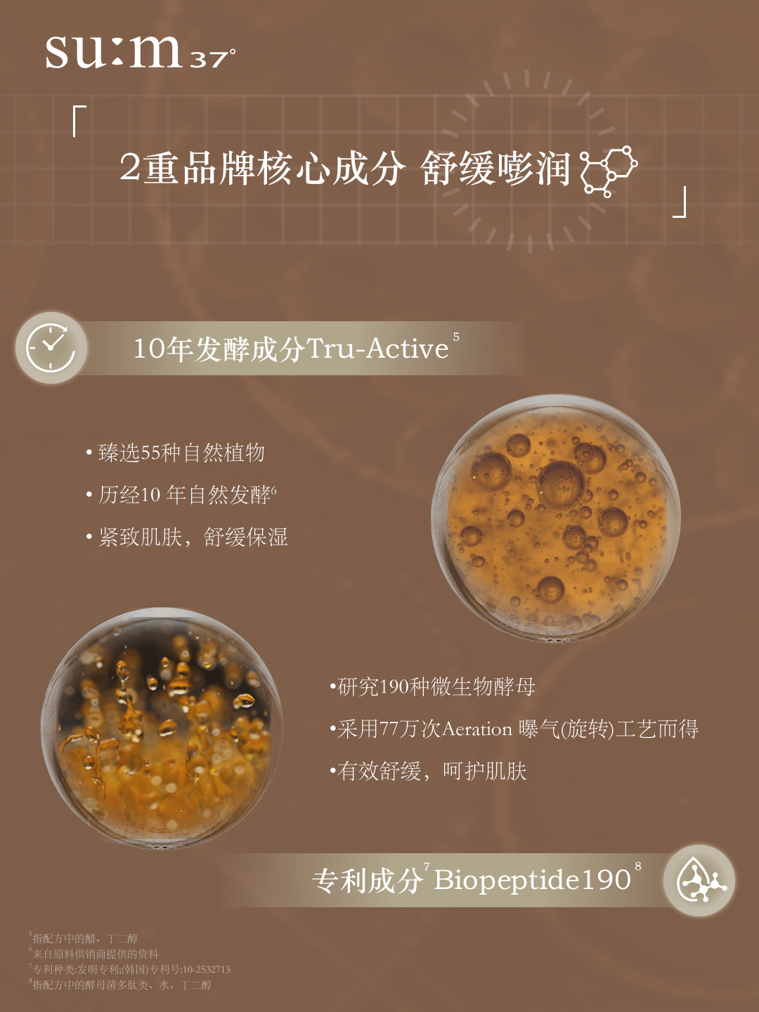 赋活悦升系列还添加了苏秘37°两大核心成分:10年发酵抗衰精粹Tru-Active和专利舒缓成分Biopeptide190,协同稳塑紧致活力肌。前者是由55种自然植物历经10年时间自然发酵而成的臻贵成分,可深入肌肤根源注入抗老“酵”能,令肌肤更显紧实弹润;后者是从190多种微生物酵母研究中获得的舒敏专利,可有效舒缓敏感刺激,赋予肌肤温和舒润“酵”能。