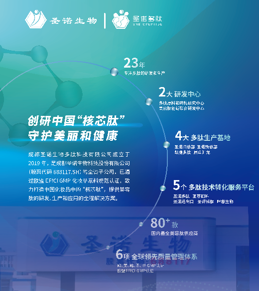 圣诺多肽的母公司-圣诺生物(股票代码688117),深耕多肽领域23年,具备从多肽原料药到制剂的全流程研发管线和全产业链平台,专注于多肽在医药和大健康领域的应用。